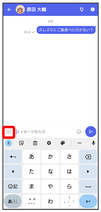 をタップすると位置情報が添付されたメッセージが送信されます。