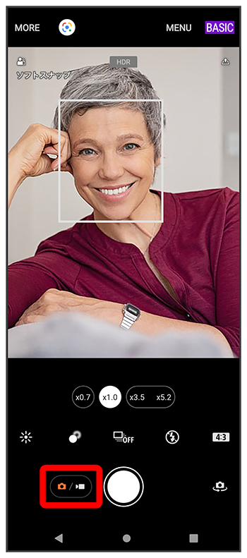 をタップして「フォト」撮影画面を表示(