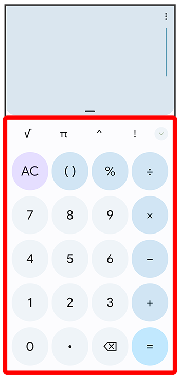 電卓画面で計算結果をロングタッチ- 電卓画面で入力欄をロングタッチと操作すると、計算式として数値を貼り付けることができます。