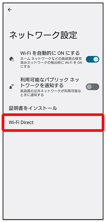 - 「ピアデバイス」欄に、近くにあるWi-Fi Direct機器が表示されます。