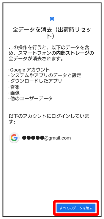 - 画面ロック解除方法を「パターン」/「ロックNo.」/「パスワード」に設定している場合は、画面ロック解除の入力画面が表示されます。画面ロック解除方法を入力してください。