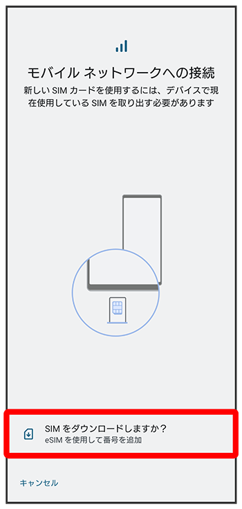 - eSIMを有効にする場合は、をタップします。以降は、画面の指示に従って操作してください。