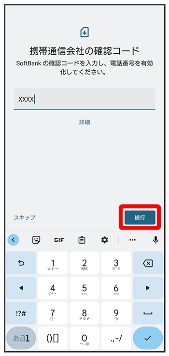 ご契約時にソフトバンクからご案内された確認コードを入力