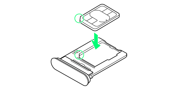 SIMカードのIC(金属)部分を上にしてトレイにはめ込む