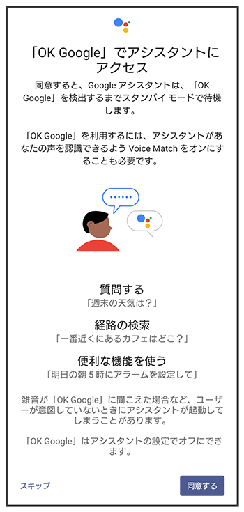 画面の指示に従って、Google アシスタント/Voice Match/Google Payを設定
