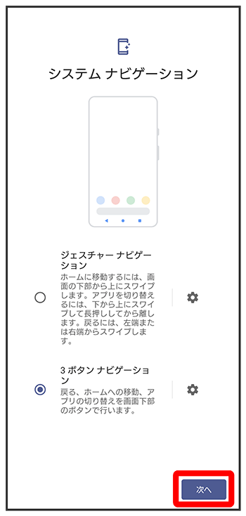 - ジェスチャー操作を有効にしたいときは、をタップします。