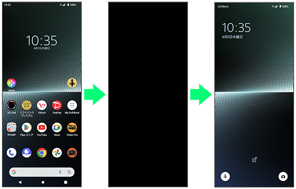 - 画面点灯時に電源キーを押すと、手動で画面ロックすることができます。