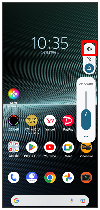 クイック設定パネルからマナーモード(バイブあり)に設定することができます。