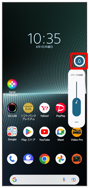 音量調節バーが表示されている間に![]()