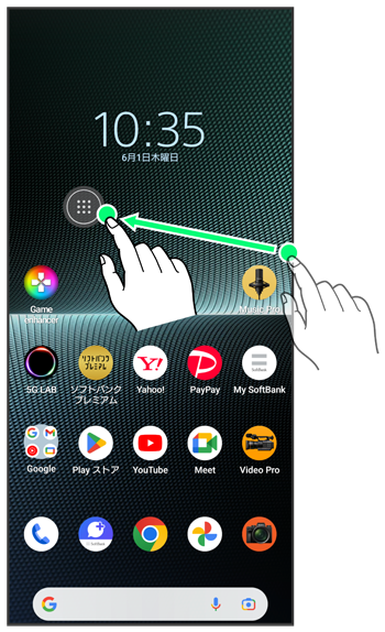 - 「このバーをダブルタップしてみよう」と表示されたときは、サイドセンスバーをダブルタップと操作して1度サイドセンスメニューを表示し、サイドセンスメニューを閉じた後に再度操作してください。