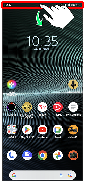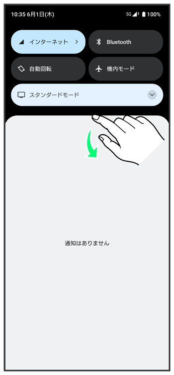 - ステータスバーを2本指で下にフリックしても、クイック設定パネルを表示できます。