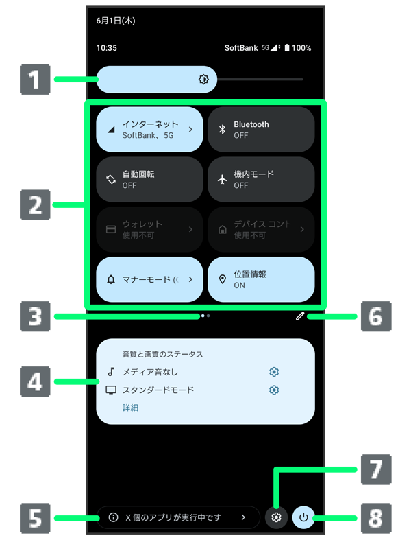 クイック設定パネルの見かた