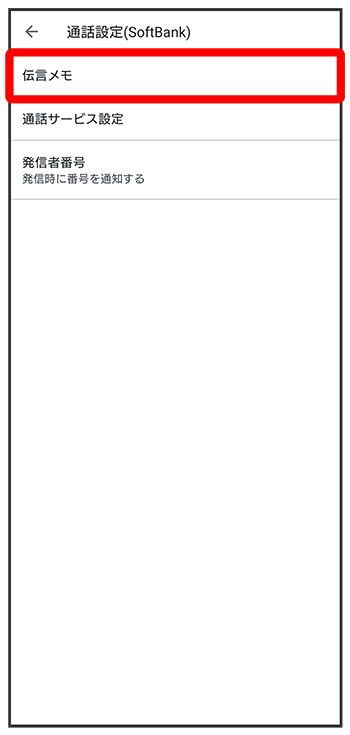 通話設定(SoftBank)画面で- 「伝言メモ」が有効のときに利用できます。