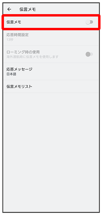 通話設定(SoftBank)画面で対象の伝言メモをロングタッチ/- 確認画面が表示されたときは、画面の指示に従って操作してください。