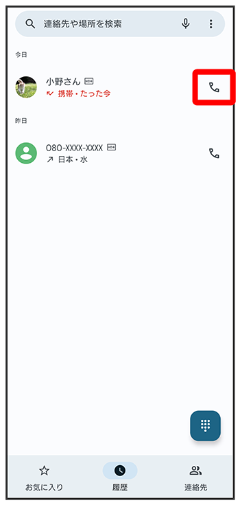 通話履歴画面で対象の通話履歴の名前/電話番号をタップ通話履歴を削除する