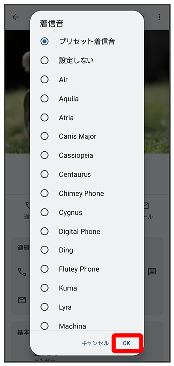 - ダウンロードした着信音などを設定する場合は、をタップして画面の指示に従って操作してください。