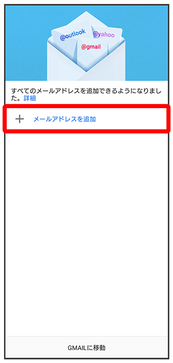 - あらかじめGoogle アカウントでログインしている場合は、をタップしてGmailを利用できます。をタップして、ほかのメールアドレスを追加することもできます。