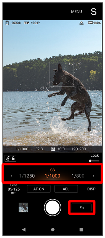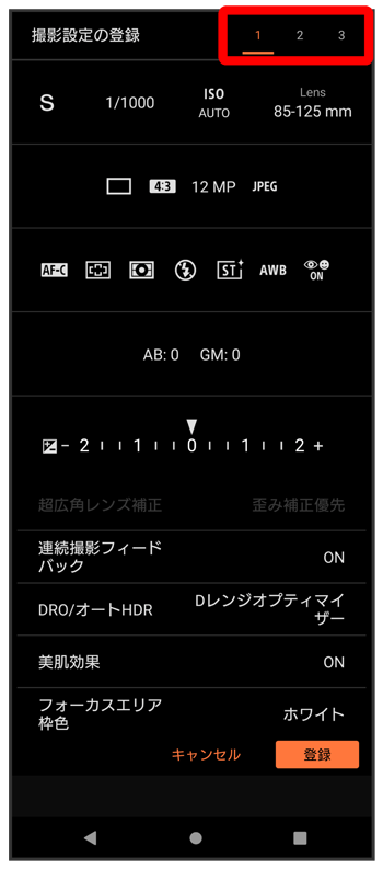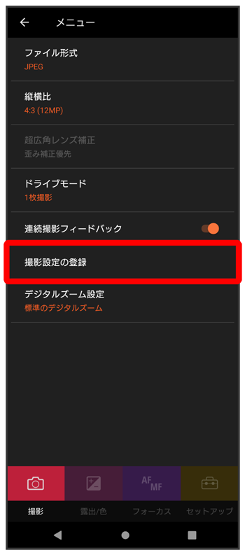 - 撮影画面でをタップすると、フォーカスモードやISO感度の設定ができます。