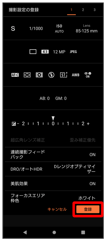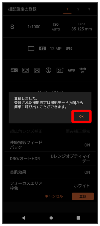 MRモードに撮影モードや設定が登録されます。