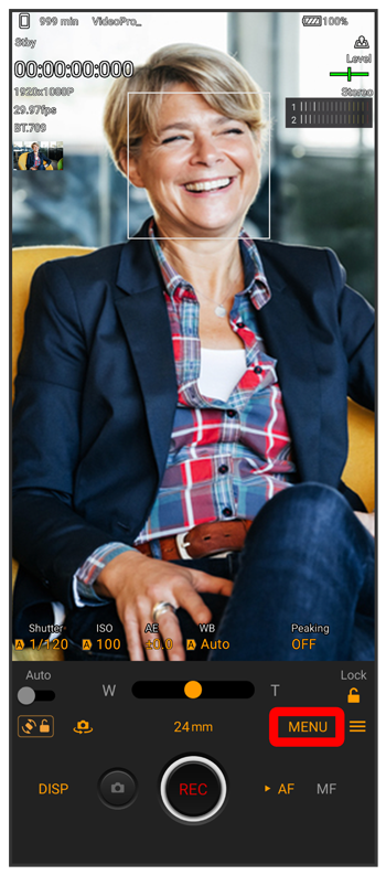 | Lens | レンズ(16 mm F2.2/24 mm F1.9/85-125 mm F2.3-2.8)を切り替えられます。 ・「Seamless zoom」を選択すると、レンズを切り替えることなく、シームレスにズームイン/ズームアウトできます。 |