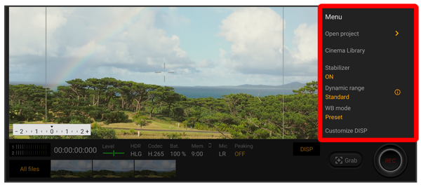 | Customize DISP | Cinema Pro画面でをタップしたときに表示させる項目をカスタマイズします。 |