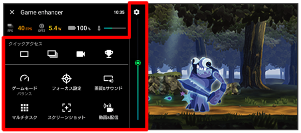 はドラッグしてお好みの位置に配置できます。 - Game enhancer使用中は、がOFFになります。詳しくは、「STAMINAモードを利用する」を参照してください。電池残量を優先する場合は、ゲーム中に