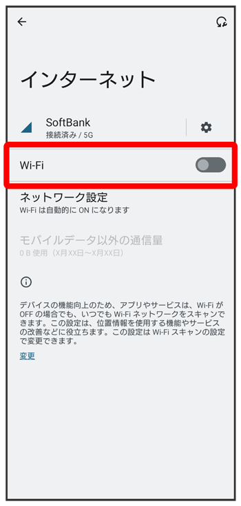 インターネット画面で(Wi-Fiを自動的にONにするかどうかを設定する