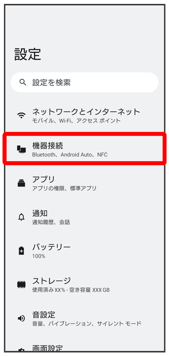 - 機器接続画面の上部に、ペア設定中のBluetooth機器が表示されます。