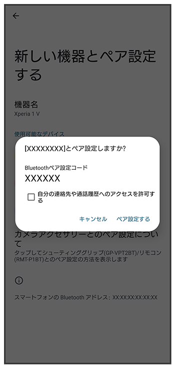 機器接続画面でペア設定中の機器をタップ/ペア設定中の機器の