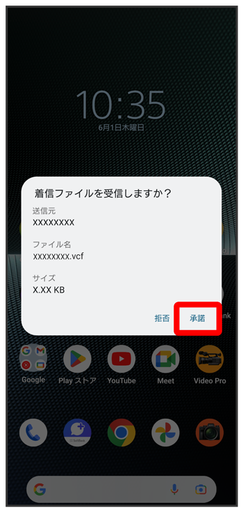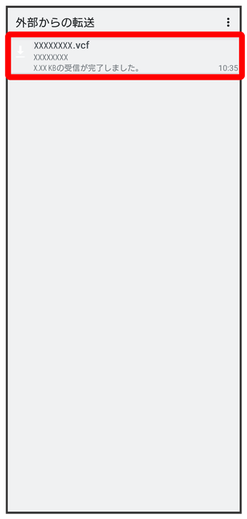 ステータスバーを下にフリック着信ファイルの通知をタップ