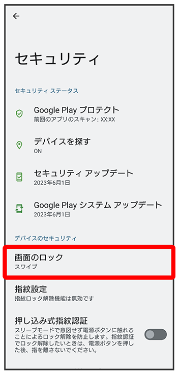 - 変更前の画面ロック解除方法がまたは以外のときは、設定が完了します。