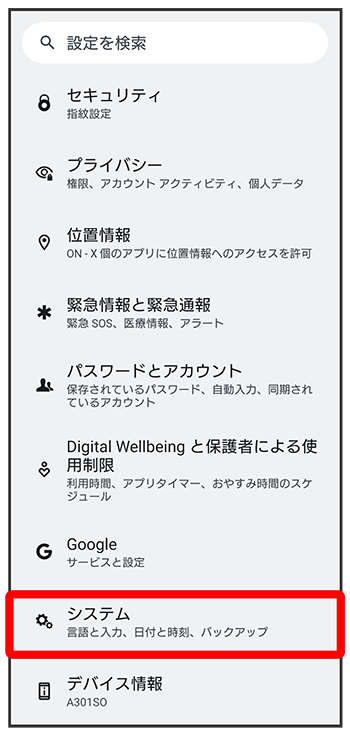 - 画面ロック解除方法を「パターン」/「ロックNo.」/「パスワード」に設定している場合は、画面ロック解除の入力画面が表示されます。画面ロック解除方法を入力してください。