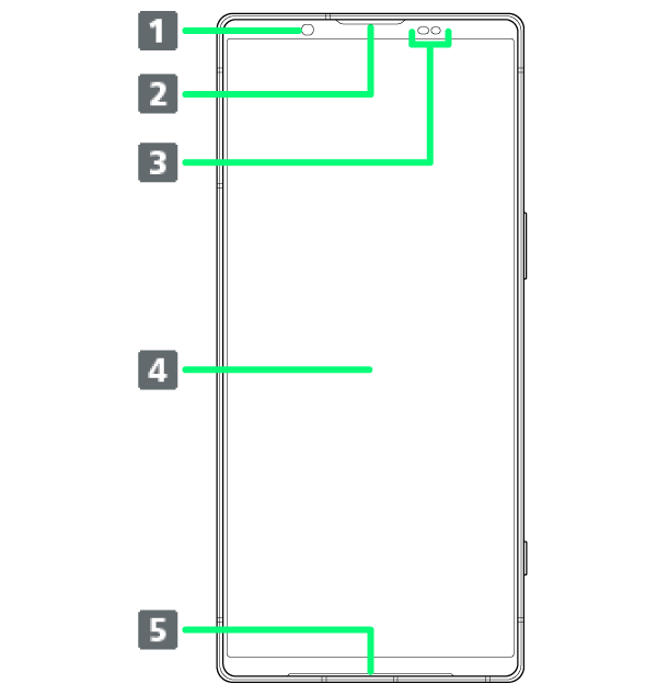 | 近接/明るさセンサー | 通話中に顔の接近を感知し、画面の消灯/点灯を切り替えて誤動作を防止したり、画面の明るさの自動制御に使用したりします。 |