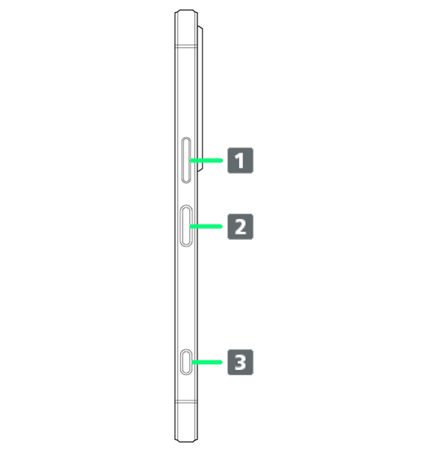 | 電源キー/指紋センサー | 電源ON/OFFを行います。詳しくは、「電源を入れる/切る」を参照してください。 画面消灯/画面点灯を行います。 指紋認証を利用して画面ロックを解除します。 |