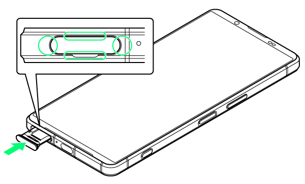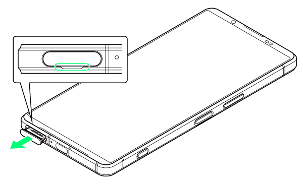 - ミゾに指先(爪)をかけて、SIMカード/SDカード挿入口のカバーをまっすぐに引き出してください。