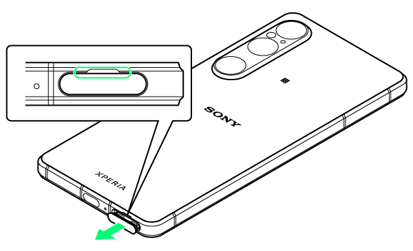 - ミゾに指先(爪)をかけて、SIMカード/SDカード挿入口のカバーをまっすぐに引き出してください。