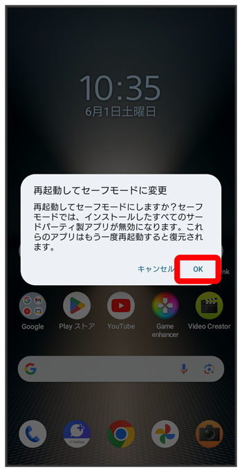 - セーフモードで電源を入れると、画面左下に「セーフモード」と表示されます。
