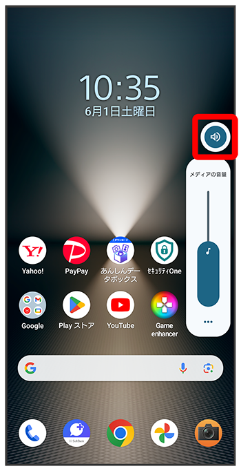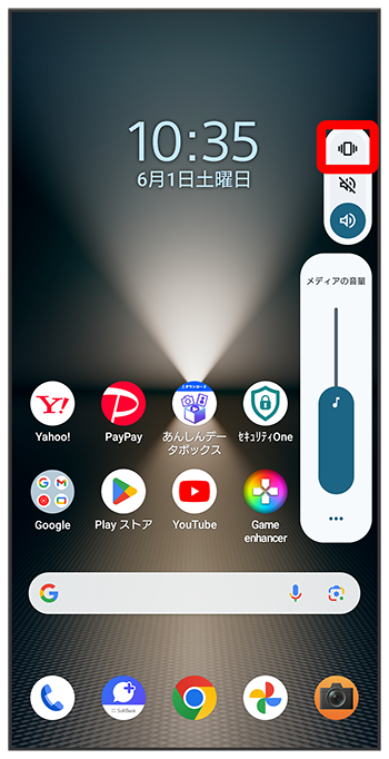 クイック設定パネルからマナーモード(バイブあり)に設定することができます。