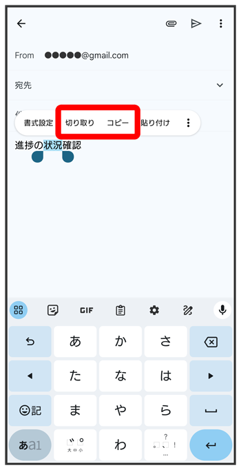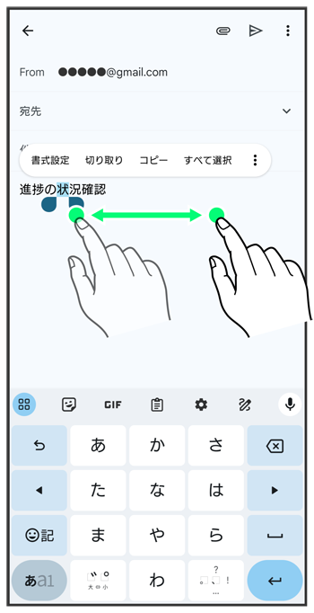 文字入力画面やウェブサイトなどで、入力済みの文字やコピーしたいテキストをダブルタップ/ロングタッチ