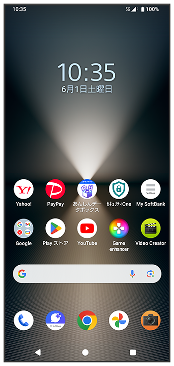 本機のおもな操作は、画面ロックを解除すると表示される「ホーム画面」と、アプリを一覧表示した「ランチャー画面」から行います。