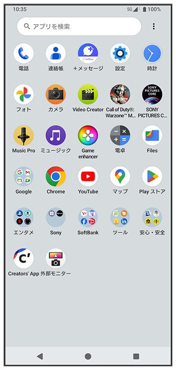 「ランチャー画面」は、ホーム画面で画面を上にフリックすると表示できます。
