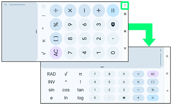 「画面の自動回転」を有効にしている場合は、本機を横向きに回転させると、自動的に表示画面も横表示に切り替わります。「画面の自動回転」について詳しくは、「画面設定」を参照してください。