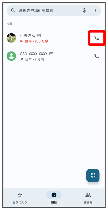 通話履歴画面で対象の通話履歴の名前/電話番号をタップ通話履歴を削除する