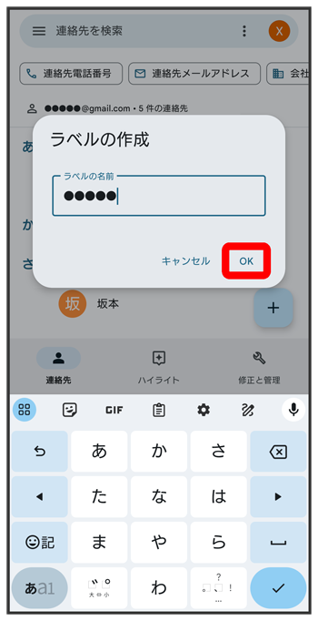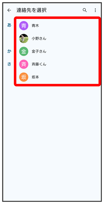 - 複数の連絡先を設定する場合は、ラベルを設定する連絡先をロングタッチ(