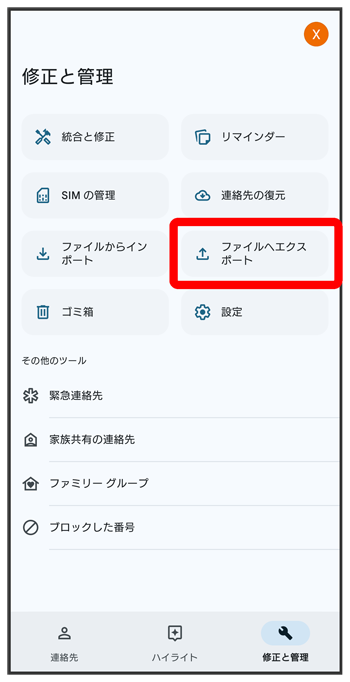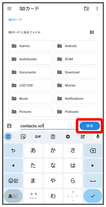 SDカードに電話帳データを保存する