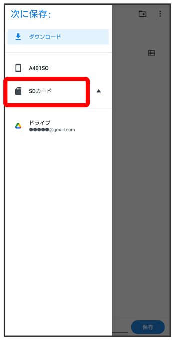 保存先のSDカードをタップ