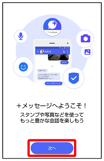 - をタップした場合は、SMS/S!メールのみの利用となり、+メッセージは利用できません。