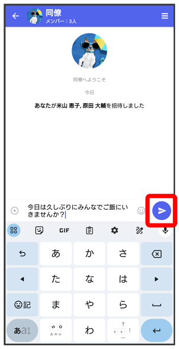グループメッセージが送信されます。