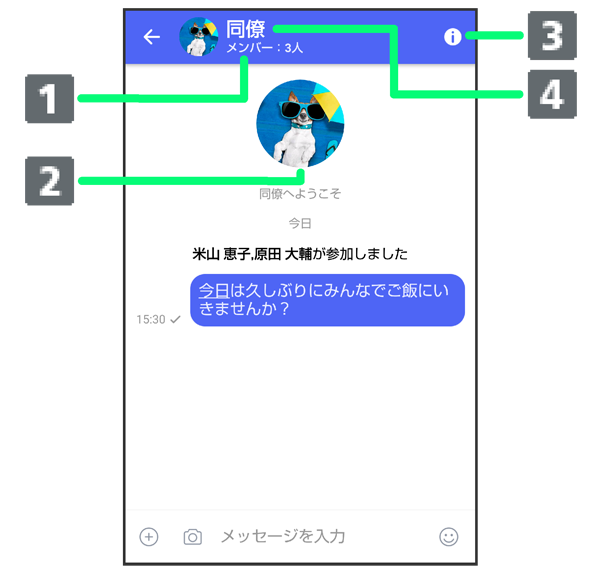 グループメッセージ画面で- 確認画面が表示されたときは、画面の指示に従って操作してください。