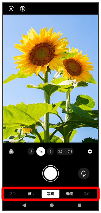 - 本機のシャッターキーを1秒以上押すか、電源キーを2回押すか、ロック画面で